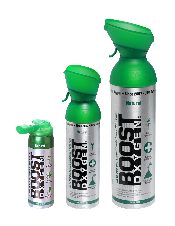 Boost Oxygen® е естествен продукт за дихателна подкрепа за аеробно възстановяване и по-добра производителност. Лесен и безопасен за употреба, преносимият кислороден контейнер доставя допълнителен кислород, където и да ви е необходим. Това е чист, концентриран допълнителен кислород, който е почти 5 пъти по-голямо количество кислород, което дишаме в нормалния въздух, който е само 21% на морското равнище. Допълнителният кислород винаги е бил от полза за толкова много хора по толкова много различни причини. От аклиматизация към надморска височина до спортисти и всеки, който изпитва задух. От 2007 г. насам Boost Oxygen® предоставя преносим допълнителен кислород на всеки без рецепта. Boost Oxygen® се предлага в удобен, лесен за употреба и преносим контейнер без химикали, пропеленти или странични ефекти. Той е чудесен избор за спортисти, възрастни хора, хора на голяма надморска височина и хора, живеещи в райони с лошо качество на въздуха. Може да ви помогне да се чувствате енергични и освежени само с няколко вдишвания. Чувствайте се по-добре, възстановявайте се по-бързо и подобрете производителността си с Boost Oxygen®.
